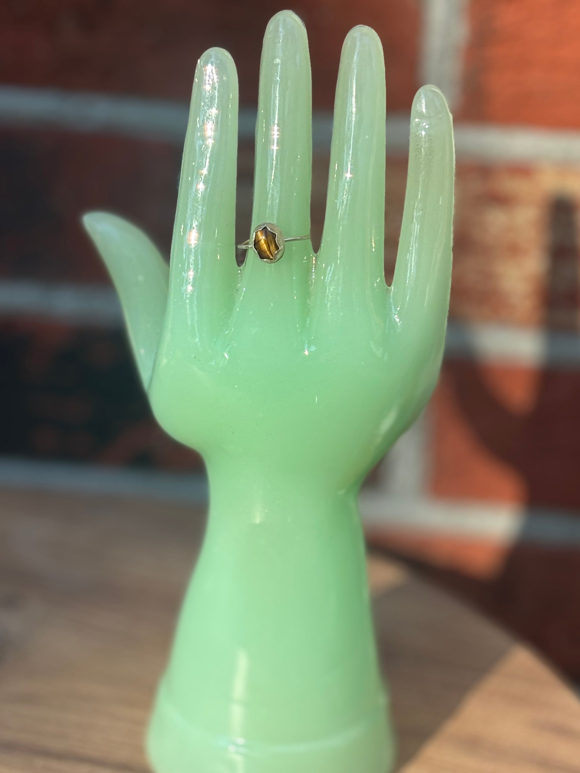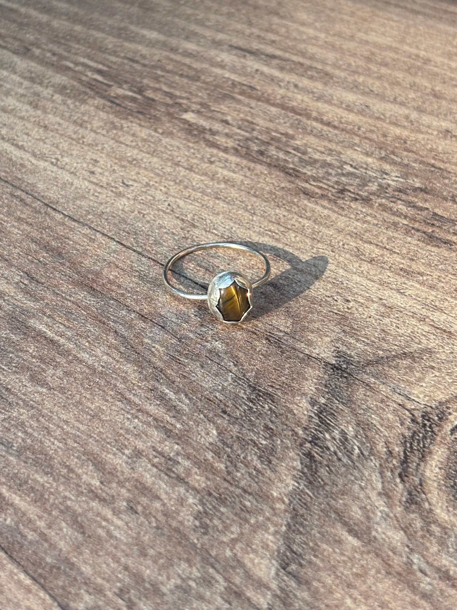 Dainty Tigers Eye Cabochon Ring - Size 7.5