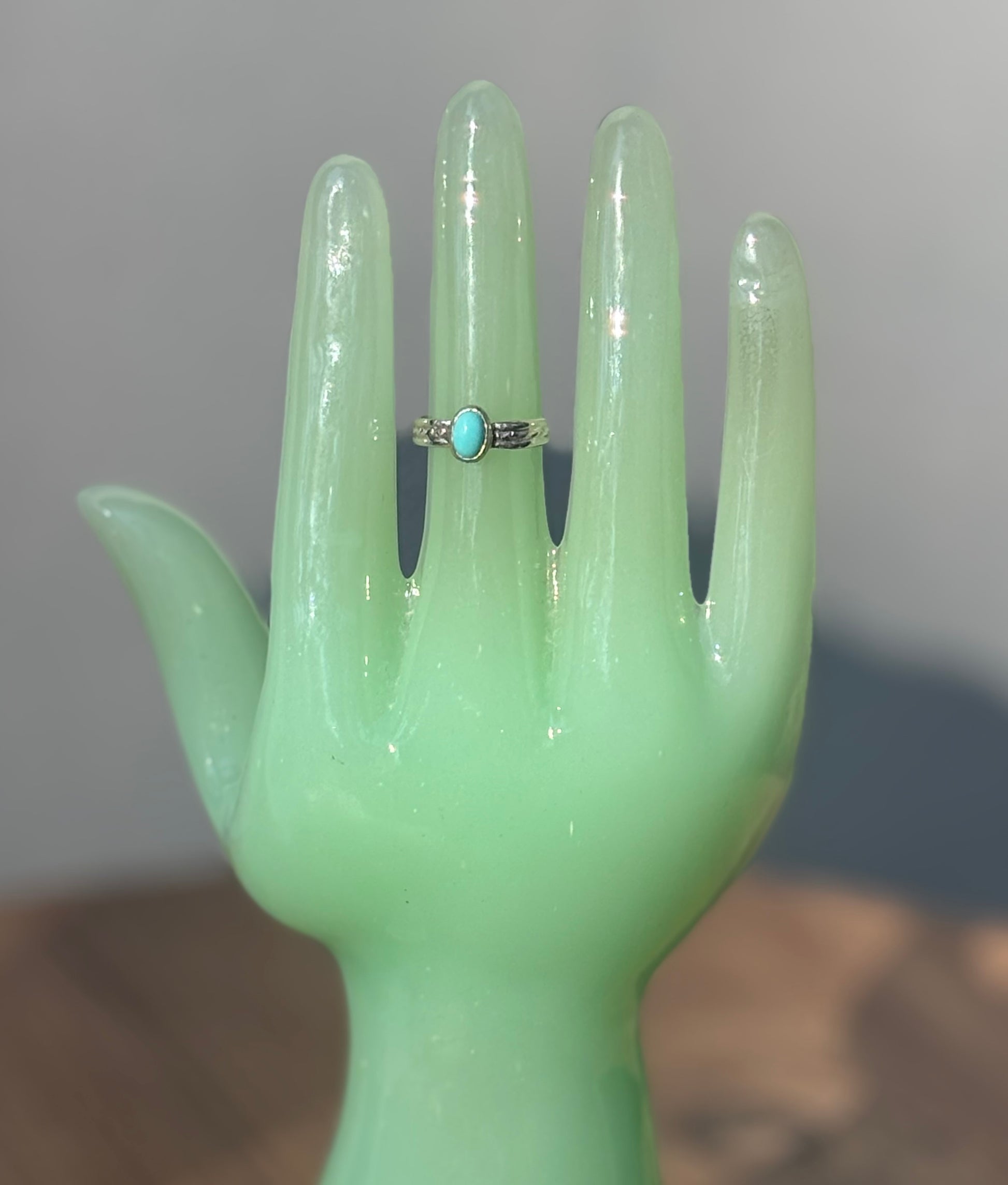 Dainty Sterling Silver Turquoise Bezel Stacker Ring